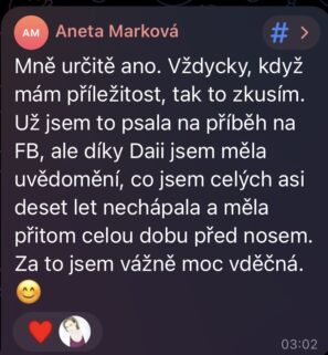 Ahoj Darjo, DAIA je fakt srdeční záležitost. ❤️ Dostala jsem se k ní až teď a prostě jí miluju. 😍 Díky za ni.